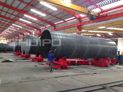 自調(diào)式異形筒體滾輪架是一種適用于焊接管道、容器、油罐等圓筒形 矩形工件的專用焊接輔助機械,廣泛應(yīng)用在制管業(yè)、壓力容器制造業(yè)、金屬結(jié)構(gòu)焊接加工業(yè)、重型機械制造業(yè)等的現(xiàn)代加工行業(yè)中。我公司滾輪架的滾輪旋轉(zhuǎn)采用交流電機驅(qū)動、變頻調(diào)速,具有調(diào)速范圍寬,轉(zhuǎn)動平穩(wěn)性好,低速特性硬等特點。與操作機、焊接變位機、埋弧焊機等設(shè)備配合使用,可對工件進(jìn)行環(huán)縫焊接及縱縫焊接,可提高焊接生產(chǎn)速度并使焊接質(zhì)量保持穩(wěn)定,顯著減少了焊接輔助時間、降低了工人的勞動強度、改善工作環(huán)境、提高生產(chǎn)率。